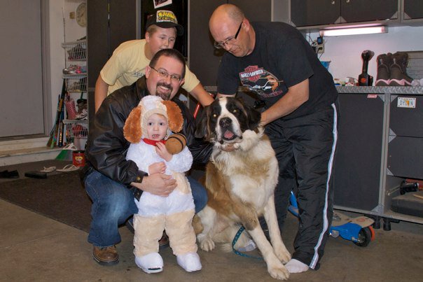 Carter was a St. Bernard for Halloween. There’s a St. Bernard named Max at our neighbor’s house, and Carter just loves him. Getting those two together was just too darn cute, as you can plainly see. He was a great trick or greater, going door to door in the neighborhood. He knocked on doors, peered into houses, and screamed in excitement at all of the other kids. He made quite the haul, but Daddy got his Pixi sticks.